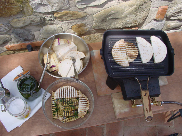 Oggi è rientrata in attività la mia piccola "cucina" esterna. Primo test melanzane alla griglia.