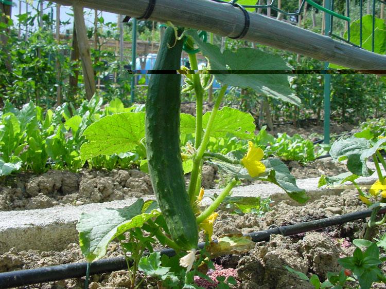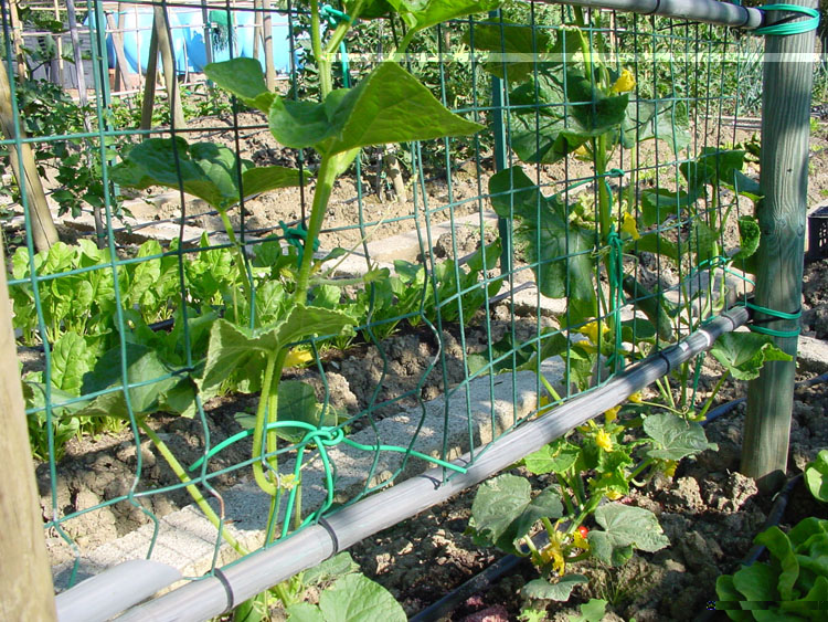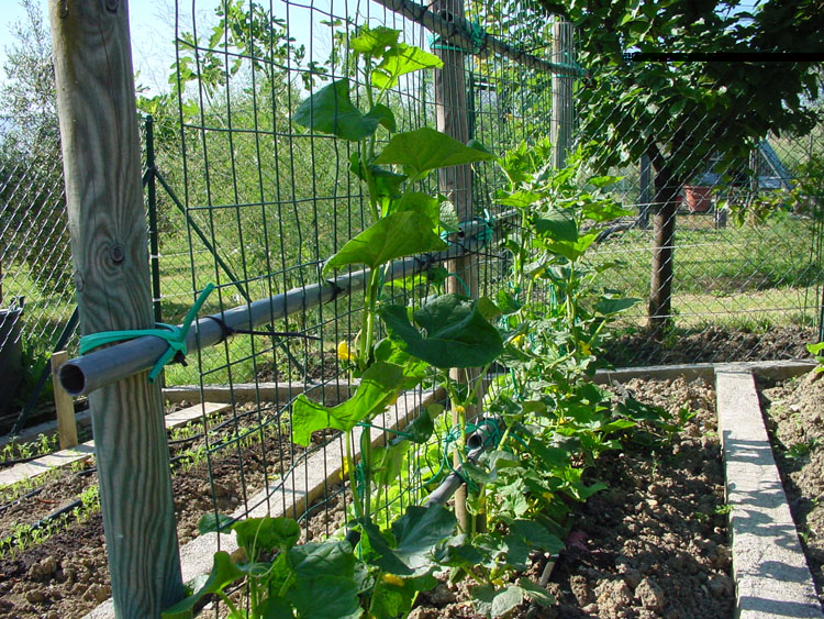 Progettando la distribuzione delle colture per aiuola di quest'anno ho semplicemente pensato di lasciare pali e rete che mi sarebbero serviti per i cetrioli.