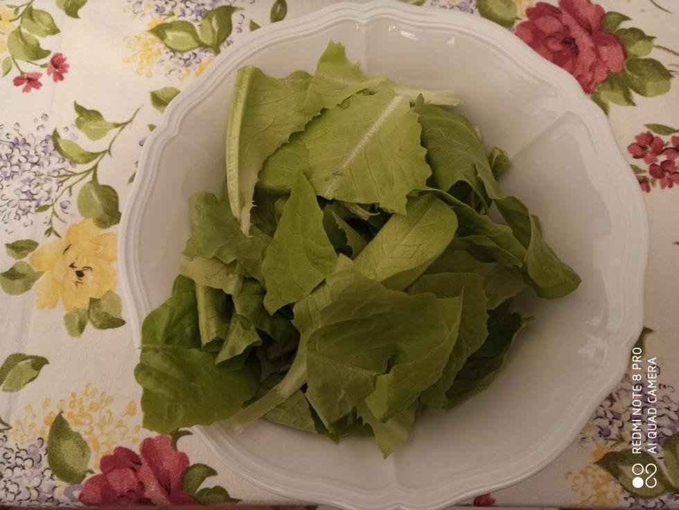 Oggi il primo raccolto di insalata. Rinchiuso in casa, un po' di verdura fresca è particolarmente apprezzata
