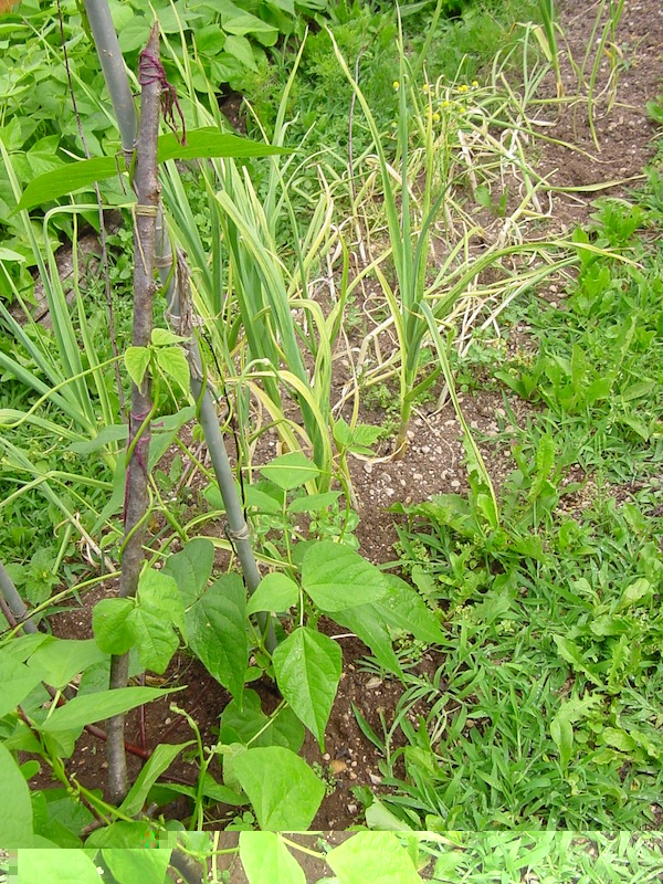 Aglio in parte già raccolto (non un granchè ha fatto molto secco) e i fagioli di Sutri di Carmen: