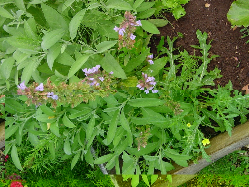 Una curiosità: vicino alla salvia che è fiorita (prima volta!) è nata una pianta di rucola