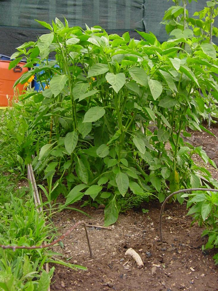 I primi alla sinistra sono marmande, ho dovuto eliminarne alcuni perchè avevano il cul... nero ed eliminare una pianta perchè era troppo ammalata, vediamo come procedono senza verde rame. Peperoni corno... davanti ... dietro ci sono quelli corno all'insù e i lanterna Allegato: