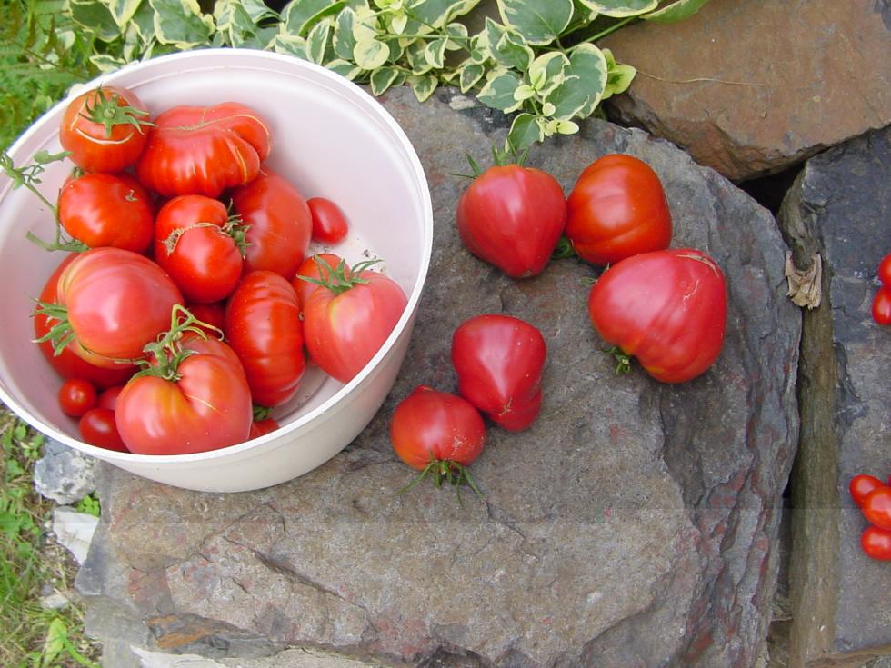 Ciao! Il caldo continua, dopo la pioggia del 24/07 più niente e non ho più potuto innaffiare l'orto perchè qui c'è poca acqua, c'è " l'editto del sindaco " quindi vado avanti con l'acqua di sciacquo delle verdure e varie, cerco di recuperare più acqua possibile! Anche la siccità insegna molto, i pomodori resistono benissimo anzi sono venuti anche più dolci! Soffrono di più peperoni vari, insalate, radicchio specie quello rosa. Inoltre sono sempre più dell'idea di Glib e compagni di tenere il suolo coperto con "pacciamatura" viva sembra strano ma le piante dove c'è più erba soffrono di meno. I pomodori by carmen: un pò acquosi  (e non ho dato da bere!) Allegato: