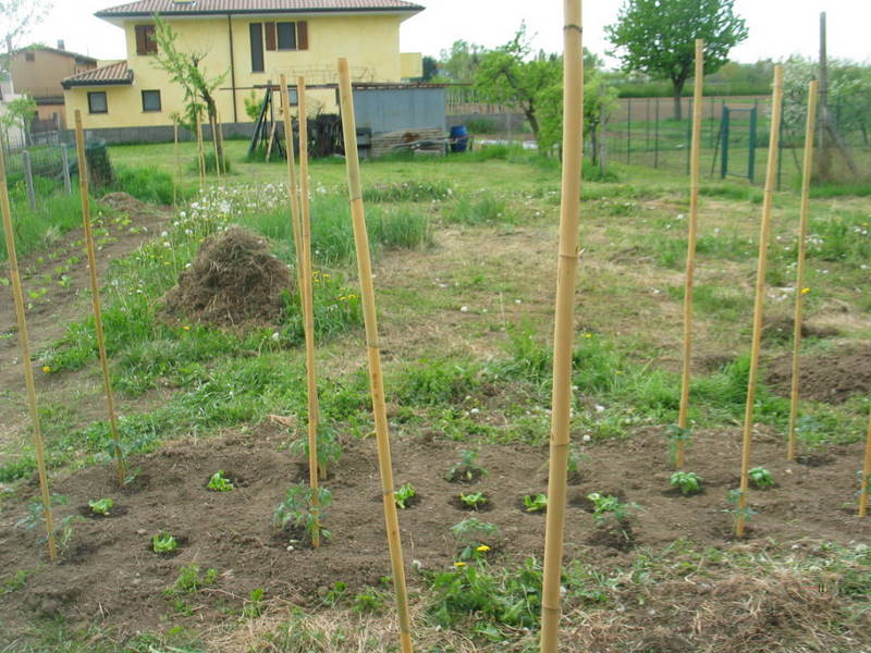 I pomodori li ho presi in vari vivai, quelli più grandi sono insalatari e pom gialli. Il mio problema è che non ho un semenzaio al caldo. A casa ho cicoria, bieta, peperoni, insalate varie, cavoli, meloni etc che presto li trapianterò. A Udine son più di 2 settimane che c'è stato un sole a 20-25 gradi e giusto ieri si è vista poca pioggia. La lattuga l'avevo messa in passato nell'orticello piccolo di casa e mi era venuta, te la mangi prima che i pomodori diventino troppo grandi, quà invece ha dei problemi, io penso perchè il terreno non è molto sciolto. Ho fatto tutto con la forca a mano La cosa buona di quel terreno è che sotto rimane abbastanza umido perchè in profondità ci sono delle falde acquifere e anche se non viene lavorato da 5 anni circa è abbastanza soffice e pieno di lombrichi, però ho levato certe radici di tarassaco che sembravano dei tronchi.