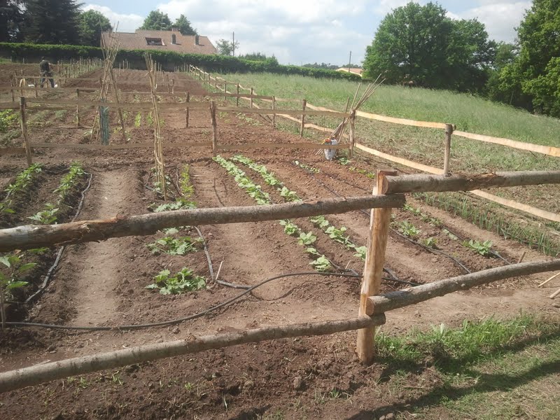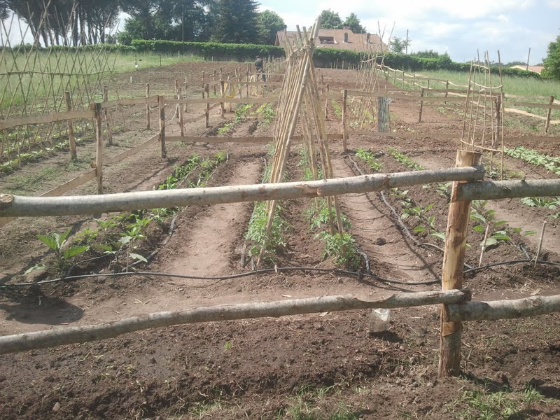 Tutti i tubi mi sono stati regalati. Quelli rigidi ha un amico che ha predisposto il sistema di irrigazione per il suo giardino. Quelli tra le file, che sono "morbidi", provengono dagli scarti dei sistemi di irrigazione dei campi di meloni e cocomeri della costa laziale.