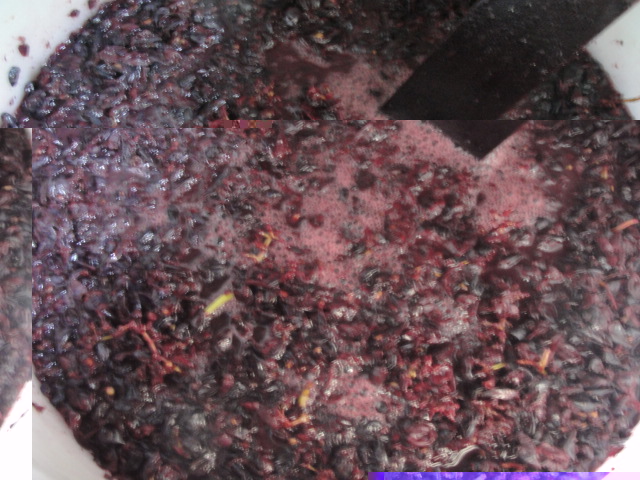 Il 21, martedì scorso, ho fatto l'ultima vendemmia (sarebbe la 4^ di uva nera) di ques'anno: Cannoau in purezza quasi al 100%, ma era l'ultima uva rimasta, solo 65 kg. e subito pigiato e un po' diraspato (come sempre): 23° Babo e magari un po' di più. Il giorno dopo ho visto che già stava cominciando a "bollire" e la fermentazione è andata via via aumentando fino all'ultimo controllo (ieri). Due giorni dopo, nonostante la buona fermentazione, la gradazione Babo era sempre a 23°. Come mai? credo che questa apparente stranezza sia dovuta al fatto che una parte dell'uva era "pabassada" (scusate il termine sardo, che traduco: "appassita"). L'uva appassita non si schiaccia bene alla pigiatura e gran parte dello zucchero è quasi allo stato cristallino, per cui si scioglie nel mosto pian piano nei giorni seguenti. Misurato ancora sabato scorso, i gradi Babo erano scesi a 14. Oggi o domani farò un'altra misurazione. Alla follatura si sente un bel profumo misto ad alcol