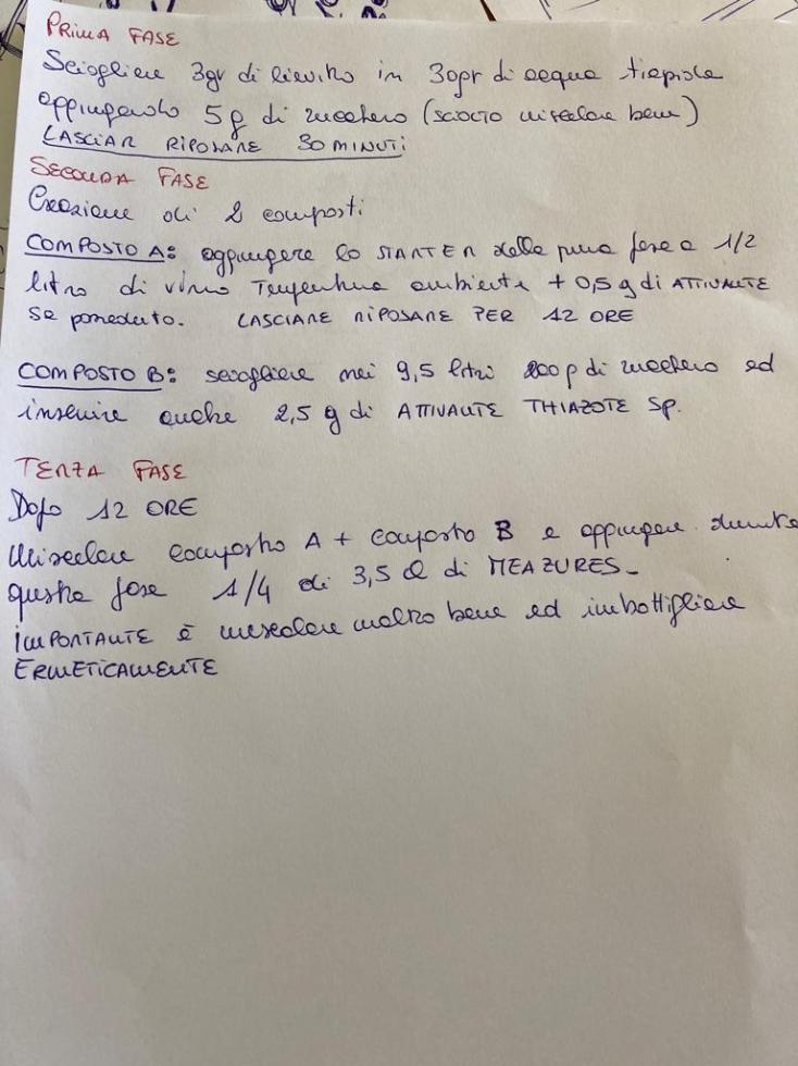 Buongiorno chiedo aiuto agli esperti sull'argomento come da titolo: ho provato più volte a spumantizzare ma con risultati pessimi... ho seguito scrupolosamente il procedimento suggerito da alcuni siti internet e riassunto nella foto allegata. Il tutto è stato eseguito a inizio agosto e per pura curiosità ho deciso di sboccare una bottiglia ieri, dunque sono decorsi circa 4 mesi.... ma il risultato è stato pressappoco deludente... infatti non vi si era creata alcuna pressione nella bottiglia... nessuna bollicina Le bottiglie una volta riempite sono state poste in posizione orizzontale e dal 2 mese in poi in posizione verticale. la delusione è stata grandissima... ho provato in precedenza ma il risultatò è stato sempre lo stesso... cosa sbaglio? AVRESTE UN ITER DA POTERMI CONSIGLIARE? POTRESTE DEDICARMI DEL TEMPO PER DESCRIVERMI OGNI SINGOLO PASSAGGIO DEL PROCESSO PER POTER GIUNGERE AD UN SEMPLICE CALICE DI SPUMANTIZZATO DA CONSUMARE IN MODO AUTONOMO? Grazie