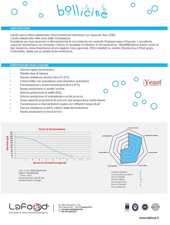 il vino lo compro presso delle enoteche o comunque presso qualche privato e pur avendo raccomandazioni in merito la sicurezza dei quantitativi di solfiti impiegati non saranno mai certi purtroppo... motivo per cui il prossimo anno proverò a compiere il percorso di spumantizzazione completo.... ad ogni modo ho trovato un lievi bayanus almeno così è identificato sul sito, anche se nella scheda tecnica non è richiamato da alcuna parte... lo allego magari chi è maggiormente informato potrà confermarmi se acquistare oppure no il prodotto... eventualmente... posso spumantizzare anche ora? oppure è necessario avere delle temperature alte e quindi attendere l'arrivo della primavera??