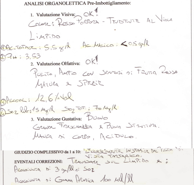 C'è un'altra cosa che non mi convince sul foglio delle analisi, c'è scritto leggera instabilità alle precipitazioni tartariche, ma non c'è un valore numero di riferimento..generalmente i dati sono riportati misurando la caduta di conduttività elettrica del vino. In questo caso risulta difficile interpretare questo giudizio e se eventualmente procedere con un trattamento stabilizzante.