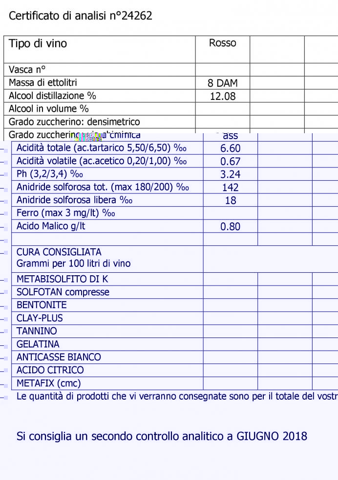 ho rifatto le analisi in un altro laboratorio e mi sembra che siano un po diverse. sicuramente l'acetica è piu bassa.