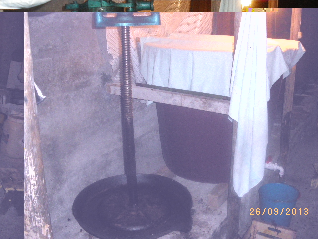 Il torchio è pronto, la tina a fianco.... :)