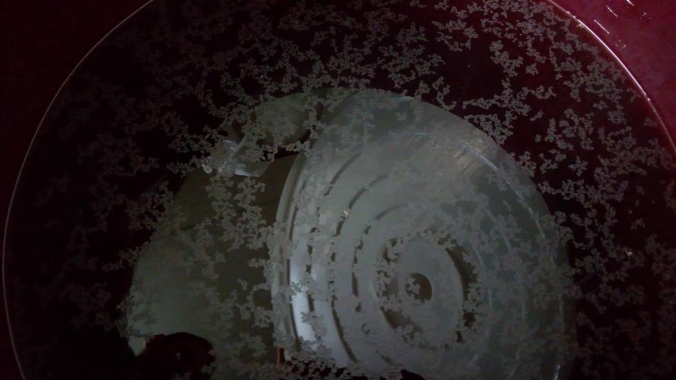 Grazie ragazzi dei vostri consigli. Giorno 25 ho separato le vinacce ( ha fermentato dal 21 al 25 che era a 0 babo, purtroppo la temperatura in fermentazione è salita troppo fino a 32°) e ho rimesso nel tino il succo. Ieri però dopo 2 giorni sul vino sono apparsi questi tipi di fiorellini. Cosa sono? adesso cosa posso fare? Ho macinato il 21 ho separato le vinacce il 25 a 0 babo e a oggi 28 sono 3 giorni che il vino è nel tino senza essere sigillato.