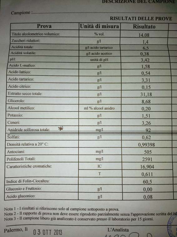 Avrete sicuramente delle precipitazioni tartariche nel corso dell'affinamento il valore del potassio è molto alto, ma il merlot è un vino strutturato perciò tutto si sistemerà. Unica attenzione per i prossimi anni è di fargli prendere poco ossigeno, nelle prime fasi di lavorazione. La volatile ancora è bassa, però avete un valore di 0,38 dopo la svinatura e questo vuol dire che ha preso un po troppo ossigeno.