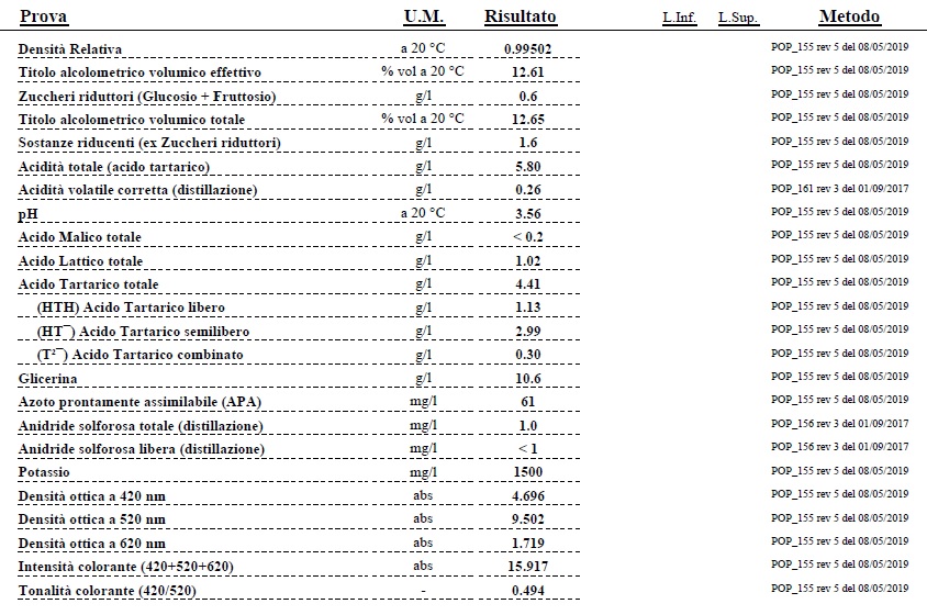 Giusto per capirici di più ,anche se ho riletto tutto,queste analisi riportate sono di una vendemmia 2020?