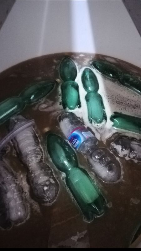 3. Aggiunte bottiglie di ghiaccio e metabisolfito al fine di non far avviare la fermentazione e portare la temperatura a circa 14 gradi