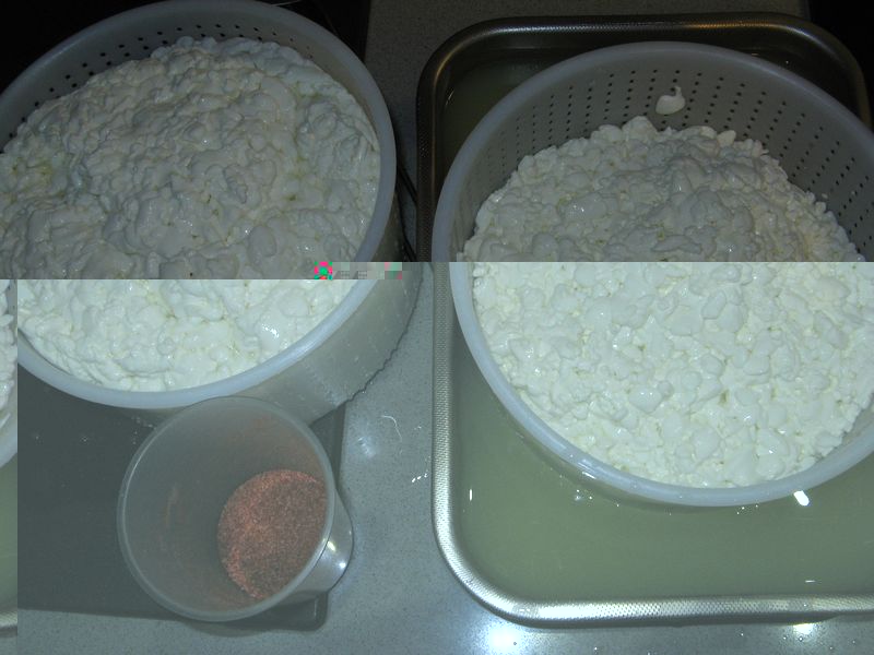 ribaltamento della cagliata nello sgocciolatoio del lavello e rottura della cagliata prima con coltello poi con le mani