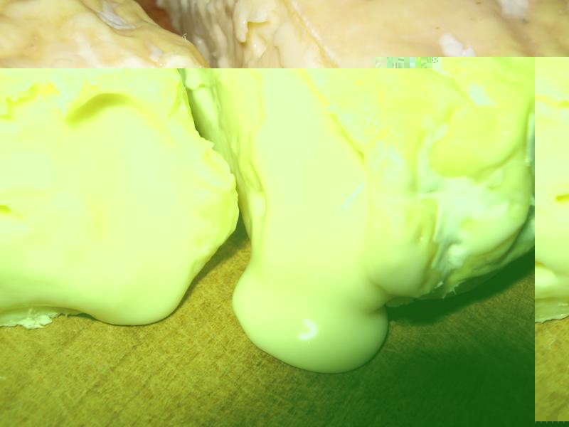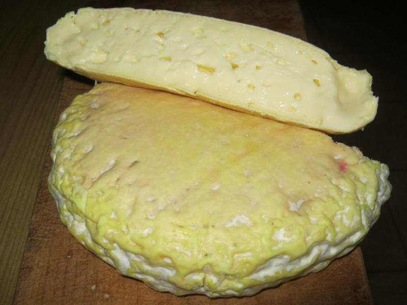 Ok, ora con un attimo di calma ho fatto le foto! Poi però ho preso una formina (che dopo pochi giorni si era un po' gonfiata) e l'ho sacrificata. Ho provato a lavarla  per vedere com'era e poi l'ho tagliata... Bastonate pure, ma datemi anche consigli se si può "salvarle" dalle altre muffe o se devo mangiarle tutte (non è un grande sacrificio  ) e poi pulire la cantina con vaporellla e cloro e ripartire perchè... SONO BUONI e quella cremina che va a spasso mi piace!!! A parte la fermentazione di questa forma, le altre come la prima che ho già messo sono normali. Ma quel colore più giallo verso lo scalzo?