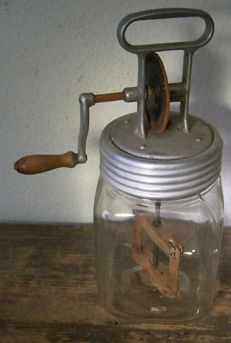 Quando ero giovane giovane, il burro lo facevamo spesso anche a casa mia, con il fiasco da 2 litri. L'ho odiato a più non posso perchè a turno ci toccava lo.....sbattimento ed era abbastanza stancante. Una volta è partito il tappo e la panna/burro si è spiaccicata sul soffitto .
