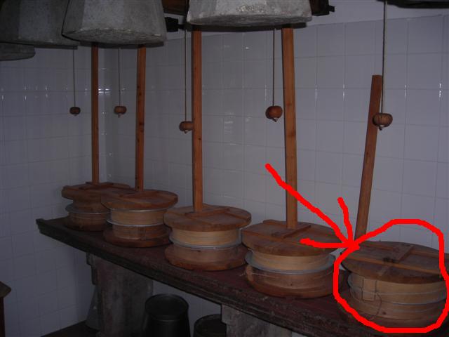 dovrebbe essere questa della foto, ovviamente non il macchinario ma solo la cacina in cui comprimere il formaggio a mano vedi.. ha un filo per stringerla via via