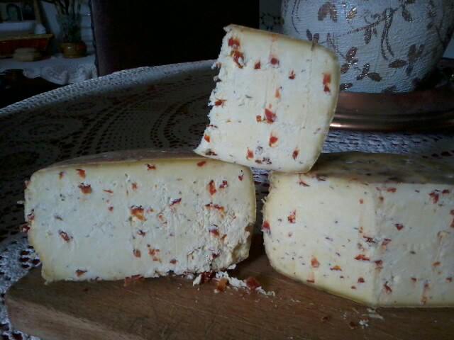 Io non ho resistito, ho aperto il mio cacioricotta a pasta cotta procedura di Piccola... ma con variante dei sapori, quando lo feci ho usato zafferano, origano e pomodorini secchi di sicilia, ha un sapore incredibile, ma il profuma per capire si dovrebbe sentire, per il mio gusto, e si che sono difficile a gusti e strana, è particolarmente buono, sapori ben amalgamati che non si sovrappongono, veramente buono. Vi posto la foto del taglio, il mio primo stagionao aperto che vi posto, ora aspetto solo il giudizio critico di chi se ne intende e se devo migliorare in qualcosa, ho usato 6 litri di latte crudo e la forma pesa Kg.1,100