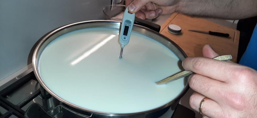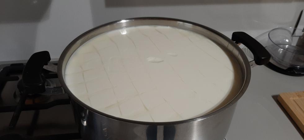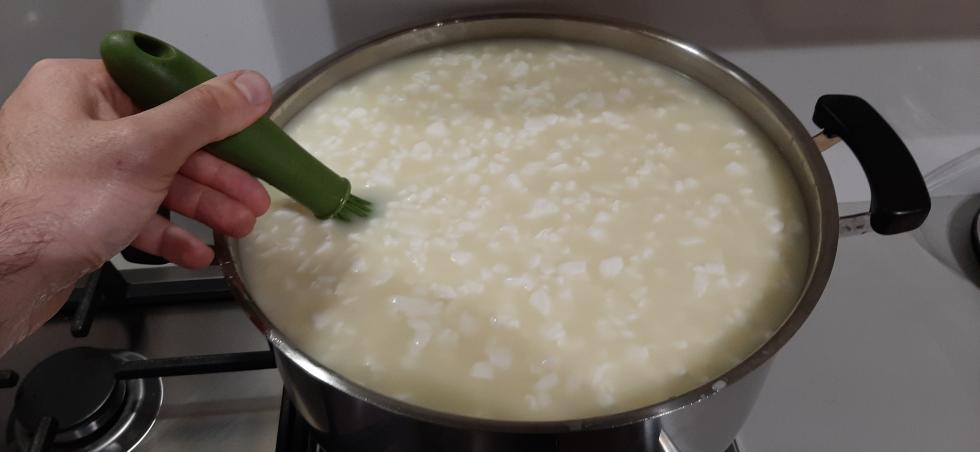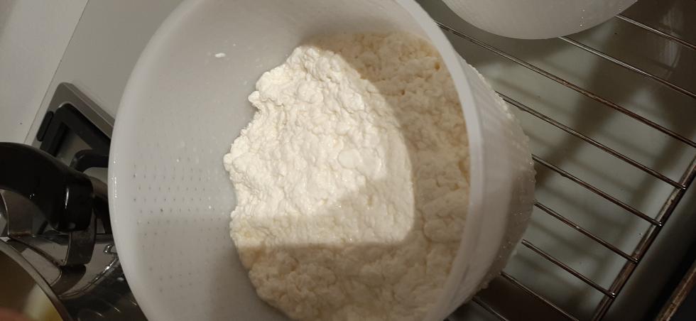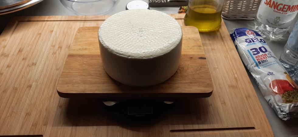 Buongiorno a tutti, posto finalmente le foto della lavorazione che ho descritto all'inizio della discussione, con la differenza che ho scaldato il latte a 37,7 gradi per errore mio e dopo la seconda rottura ho scaldato sino a 45°C per scelta, per paura di non riuscire a gestire una forma più "molla" nelle fasi successive. Spero possa essere di interesse e ovviamente accetto tutti i vostri ottimi consigli. Durante i prossimi giorni caricherò le foto della stagionatura in corso.