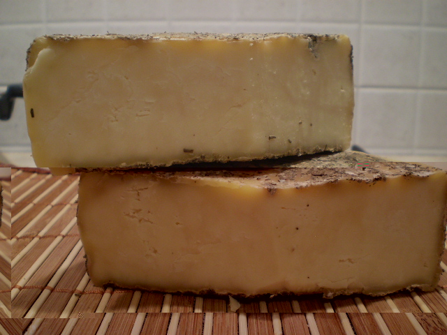 ecco la mia caciotta al rosmarino... 48gg di stagionatura. sapore rotondo al palato ma deciso, pizzica leggermente la lingua, sapidità ok, pastoso tendente al gessato.  buona ma le prossime non le faccio superare i 35 gg... preferisco una pasta un po più elastica