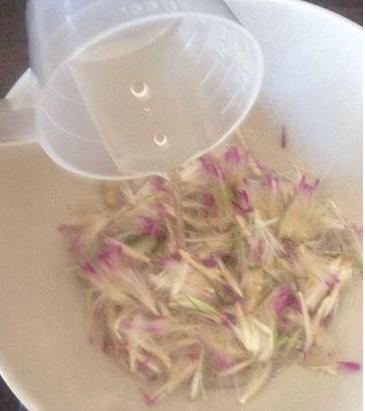 Ho messo gli stessi in una ciotola, (erano 6 grammi), ci ho aggiunto 30 ml di aceto bianco e 1 grammo di sale, li ho fatti immergere per bene, aiutandomi con le dita, in modo che tutti gli stami e pistilli fossero bagnati.