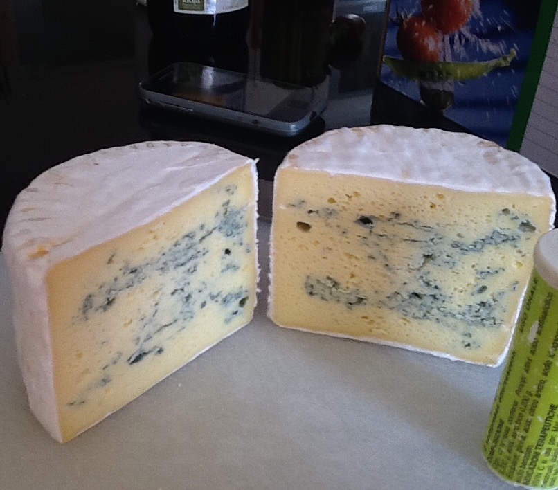 Atteso 20min, taglio a croce 1,5x1,5cm, atteso 10min, tagliato a nocciola con frusta in 4/5min, atteso 5min, rivoltamento cagliata 5min, attesa 5min, rivoltamento 5min e poi messo in fuscella. Camera calda a 30gr e rivoltamenti a30/30/60min. Lasciata riposare a TA per 8h. Salata a secco con 30gr per kg, messa in frigo a 7/8 gr per 15h, sciacquato la forma con acqua fredda e asciugato bene. Forato lo scalzo e lasciato la forma in frigo ad asciugarein frigo per 2giorni. Spruzzato la forma col camamberti e messo a stagionare a 12gr e 85% HR