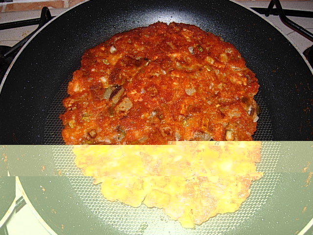 Per la sfoglia impastare la semola mista alla farina, 50 g di strutto, un cucchiaiio di zucchero, un pizzico di sale e acqua tiepida q.b. lavorare fino ad avere una pasta soda e liscia. avvolgere nella pellicola e lasciare riposare.
