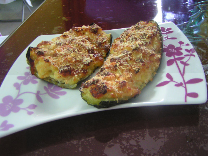 Estratto le zucchine semi cotte e riempite, cosparse di altro redez grattuggiato e un leggera spruzzata di pangrattato.