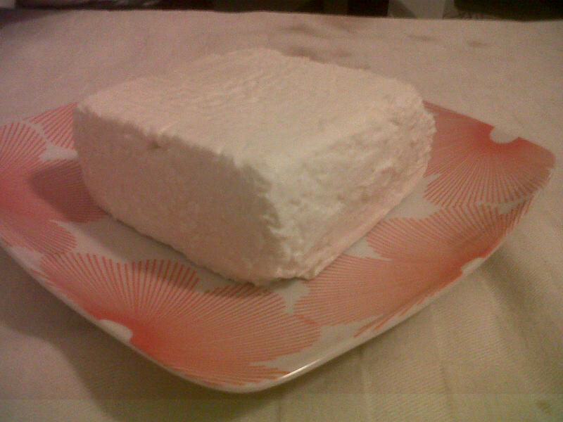 Scaldo a fuoco basso il latte girandolo continuamente; quando inizia a scaldarsi aggiungo un cucchiaio di yogurth e mezzo tappino di caglio liquido. Quando arriva poco oltre la mia temperatura corporea spengo il fuoco, copro con coperchio e copertina e lascio cagliare. Quando la cagliata ha una consistenza soda (inclinando il contenitore verifico che abbia la consistenza di un budino e che si stacchi in blocco dalle pareti senza rompersi) taglio a croce e ricopro fino a quando i 4 pezzi non vengono completamente coperti dal siero (circa 1 ora). A quel punto sposto nelle fuscelle i blocchi prendendoli con uno scolapasta piatto e bucato, facendo attenzione a non romperli e a maneggiarli delicatamente. Lascio scolare per circa 10 ore in un contenitore di plastica e poi metto in frigo per circa un giorno.
