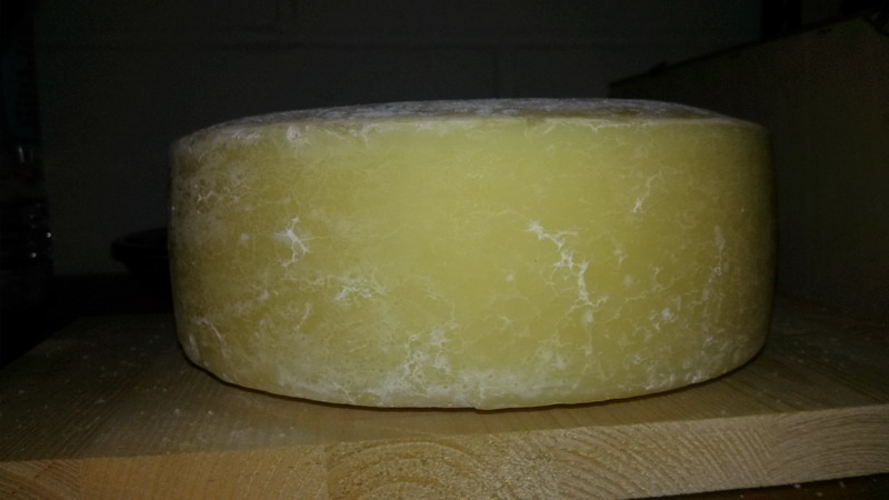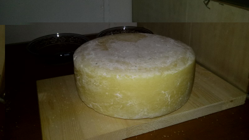 Salve a tutti, ecco la mia prima produzione di Fontal: Latte crudo 18 kg. Caglio in pasta di capretto dimensioni cm 20x10 x 2 Kg. sara' pronto fra 40/50 giorni !! dall'Oriente con furore !!!
