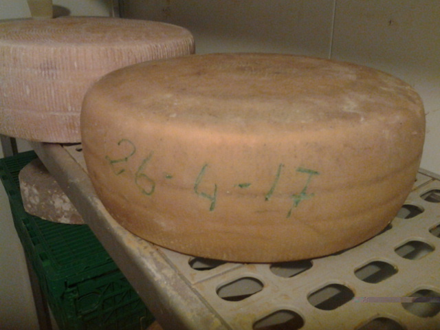Ciao a tutti, fra qualche giorno apriro'una delle due forme di Fontal del 26 04 17, oggi ho provato a sondarla , sembra ottima sia di sapore che consistenza.Il latte era lt. 180, ovicaprino 70 30.% portato a 40 gr. Ferm. Lio e attivato 40 mn.Caglio capretto gr80, titolo 1.10000, presa 10mn.sosta5mn.e rottura a mais, aggiunto acqua sino a 42gr., messo in fascera , sotto peso e stufatura per 6 ore a 35gr. giorno dopo salatura a secco 3%,cantina 8 10 gr.spugnature saline1x % ,2 a settimana per primi 60gg.Provo se riesco a postare foto.