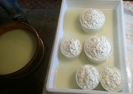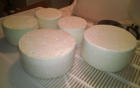 Ho pastorizzato il latte fino a una temperatura di circa 68°C per meno di un minuto, ho raffreddato il latte fino a 38°C, ho aggiunto lo yogurt e mescolato per due minuti, fatto riposare 15 minuti, Ho innestato il caglio ad una temp. di 36°C, mescolato delicatamente per 2 minuti e lasciato riposare 35 minuti, Primo taglio a croce con riposo di 15 minuti, secondo taglio a chicco di mais/riso e rimesso subito sul fuoco nell'arco di 40 minuti ho raggiunto i 46°C tenendo sempre ben mescolato per tenere la cagliata in sospensione. Tolto dal fuoco e fatto riposare per 20 minuti per permettere alla cagliata di adagiarsi sul fondo. Ho raccolto la cagliata e messa in fuscelle, pressato per un'ora, rivoltato la prima volta, sottoposto a pressatura ancora per 1 ora e mezza (ambiente 21°C) Tolto dalla pressatura e rivoltato 6 volte nell'arco delle 24 ore successive alla messa in fuscella. Ho ottenuto 3 forme da 700g e 2 da 1250g circa, il peso esatto totale dopo 5 ore era 4560g. (è una buona resa?). Su consiglio del maestro Tsuna ho preparato una salamoia al 20% con immersione di 12h al Kg. Tolte dalla salamoia ho messo le forme a stagionare su un asse di abete non trattato in ambiente tra i 12° e 15°C con umidità purtroppo un po' bassa intorno al 75%. Dopo una settimana le forme hanno secondo me un colore un po' anonimo, ma chiedo a voi se è normale. Grazie a tutti.