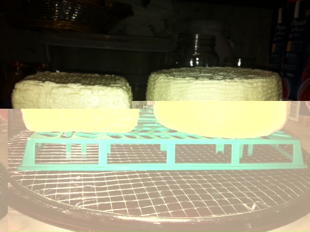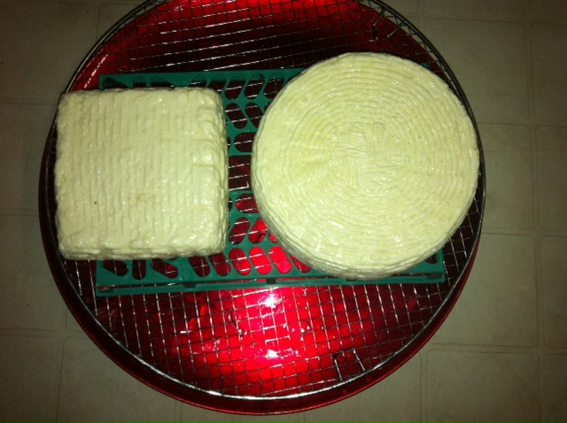 adesso le due forme sono in cantina (ho fatto 2 "pentolate") al tatto sono belle compatte e bianche.