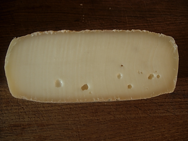 Il primo dei due Montasio fatto con la Lipasi, tre mesi di stagionatura, a parte qualche buco di troppo  il gusto è da URLO (assomiglia ad un provolone saporitissimo) e la consistenza tipo asiago/emmenthal, un pò plasticosa, come piace da morire a me!!