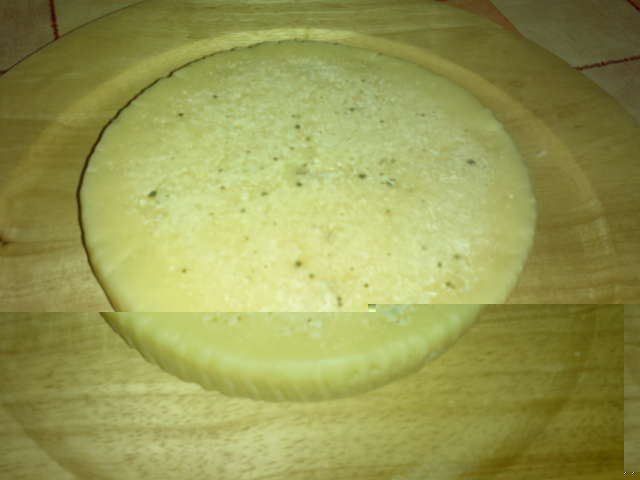 vi allego due foto dell'evoluzione dei miei simil montasio. il primo è stato fatto il giorno 7 dicembre, è ancora piuttosto molliccio e purtroppo perde la crosticina che si forma. è stagionato a 10 gradi con circa l'85% di umidità. pesava 1,700 kg e ora ne pesa 1,200 ed è il frutto della lavorazione di 20 litri di latte il secondo è stato fatto con circa 6 litri di latte, pesava 900 gr ed ora ne pesa 700. è stato lavorato il giorno 24 dicembre, stagionato in frigor di casa con circa 5 gradi e il 70% di umidità la crosta è dura, e ha poche crepe.