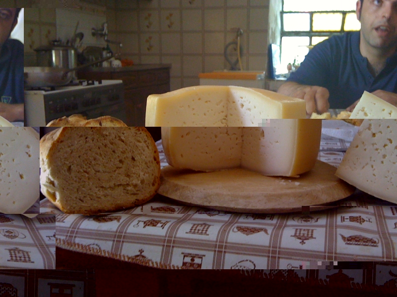 solo per sostituire, come promesso, la foto in bianco e nero con quelle a colori del primo montasio fatto a giugno. Ora in frigo ce n'è un'altra con lo stesso formato e una fatta con la fascera h 8 cm. Sullo sfondo mio cognato, autore del pane fatto nel forno a legna. Allegato:
