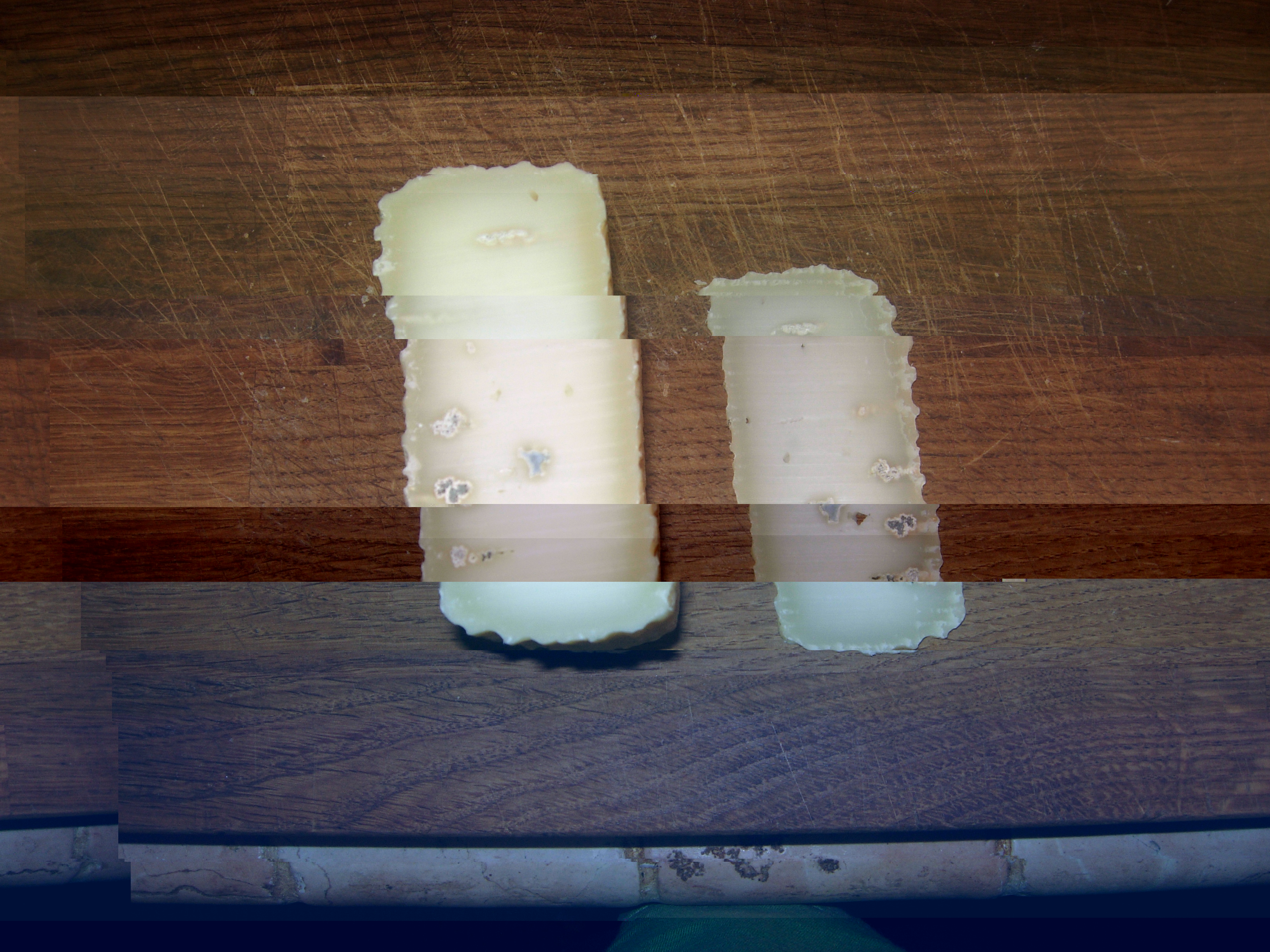 Dopo 15 minuti facciamo il secondo taglio alla grandezza di una nocciola, naturalmente bisogna essere delicati nel taglio per evitare di spappolare la cagliata, il secondo taglio dovrebbe durare tra i3 e i 4 minuti.