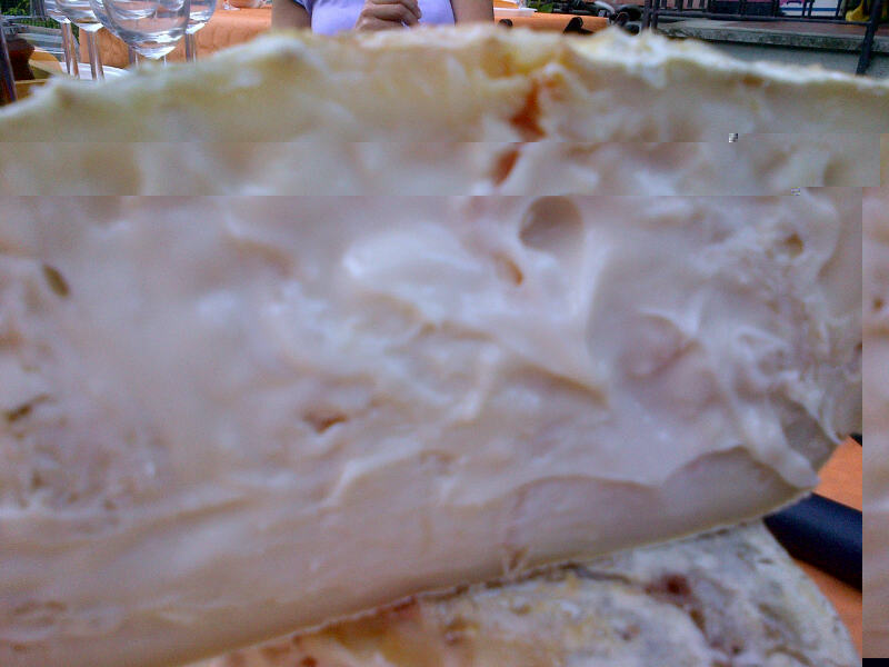 in realtà secondo me le muffe le ha sviluppate ma bianche e non verde/blu nel primo periodo di frigorifero non era così morbido e i buchi rimanevano bene aperti su entrambe le facce nelgi ultimi dieci giorni di maturazione probabilmente la proteolisi ha fatto il suo lavoro e ha cremificato lo avessi cosparso di penicillium era da mangiare anche la buccia (che comunque il cane ha gradito molto)