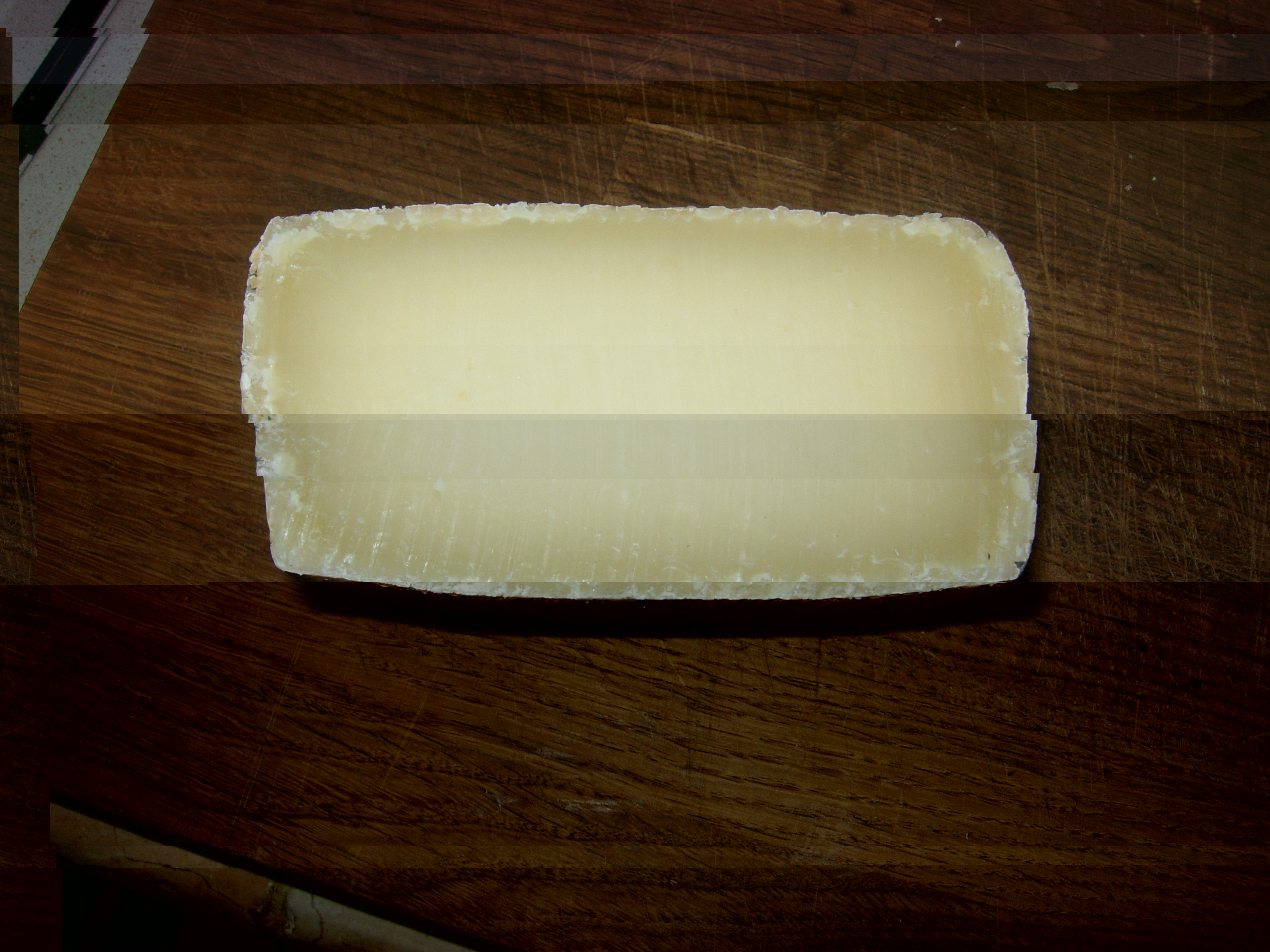 Ed ecco anche il Bastardo del Grappa aperto, gusto ottimo e consistenza asciutta e abbastanza morbida, fatto stagionare 5 mesi e mezzo, diciamo che questo è il formaggio ideale per il sottoscritto, un pò di mesi ancora e si grattava