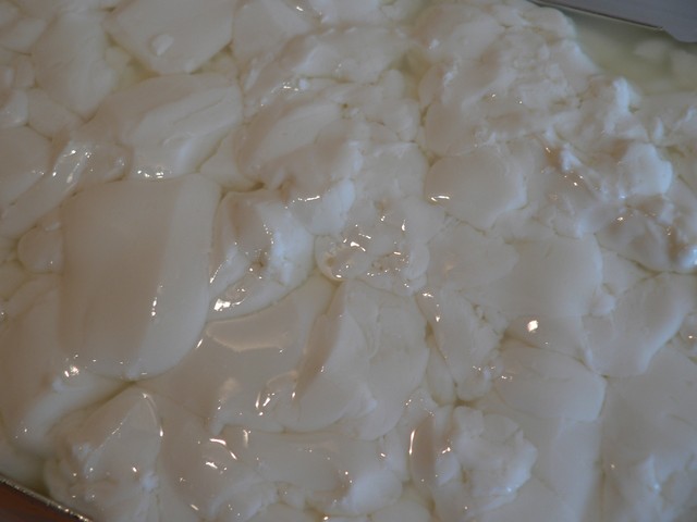-Lasciare nello stampo 24/36 h coprendolo con la pellicola in frigo (se resta piu' tempo nello stampo perde meno siero e dovrebbe restare piu' morbido)