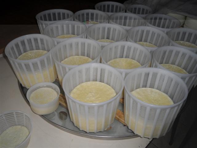 ore 9.00 dopo aver rotto la cagliata in pezzi piccoli come nocciole, raccogliamo la cagliata nelle fuscelle e inizia la stufatura...
