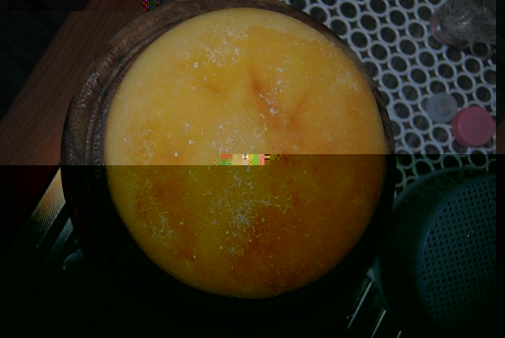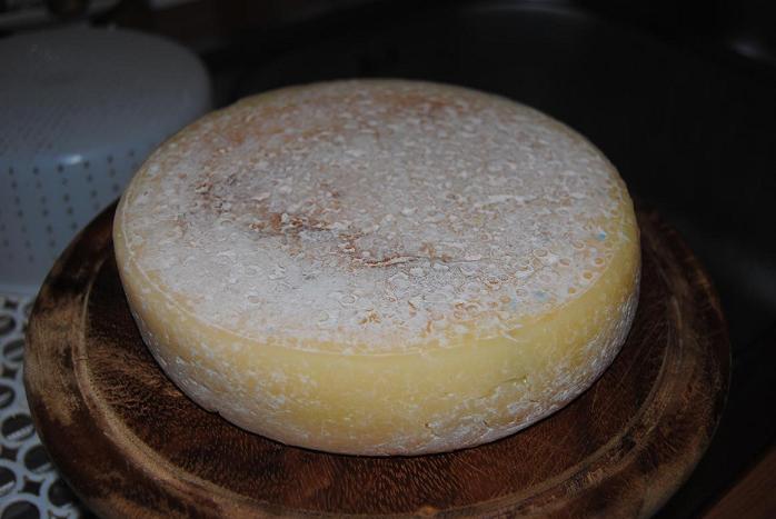 Allego qualche foto della caciotta dopo 2 settimane di stagionatura. Che mi dite del gonfiore della faccia superiore che si vede nella terza foto? E del colore della crosta?