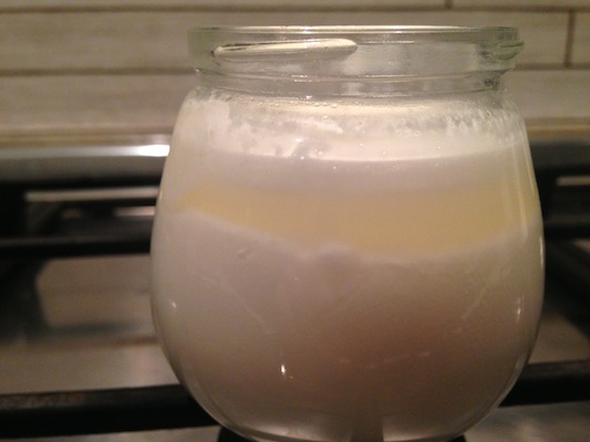 Ieri ho riprovato a fare il lattoinnesto e penso che questa volta mi sia venuto. Per prima cosa avevo a disposizione una yogurtiera che una mia amica mi ha regalato in quanto inutilizzata. Avevo provato a fare lo yogurt il giorno prima ma la temperatura non superava i 35°. Così ho provato a riempire di latte a 65° un unico vasetto posto al centro dell'apparecchio dove la temperatura è più alta. Ho seguito i tuoi consigli Giliberti e l'ho tenuto per 20 ore. Nel frattempo ho provato la temperatura diverse volte e non è mai andata sotto ai 47° (escluso un momento in cui, per curiosità, ho spostato il vasetto ai lati e ho visto che in effetti era scesa arrivando a 43). Posto le foto per avere da voi una conferma (o una smentita) se di lattoinnesto posso parlare.