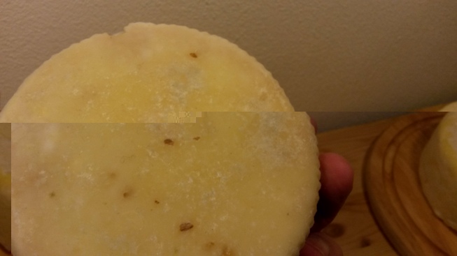 grazie mille gilberti , in effetti la storia degli assi di legno torna... tanto e che su quello che ho tenutoo nelle felci non sono comparse ti , ti riallego la foto . ancora piu strana su una caciotta invece non ne e comparsa nessuna . bo.