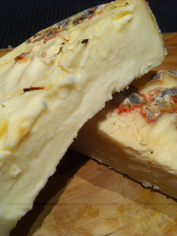 Come consistenza simile al taleggio... non aveva sviluppato una vera e propria crosta... le foglie lasciano un non sò ché di bosco molto gradevole! La grappa sinceramente si sente, ma non troppo (speravo di più); credo però abbia aiutato a formare la consistenza tenendo umide le foglie.