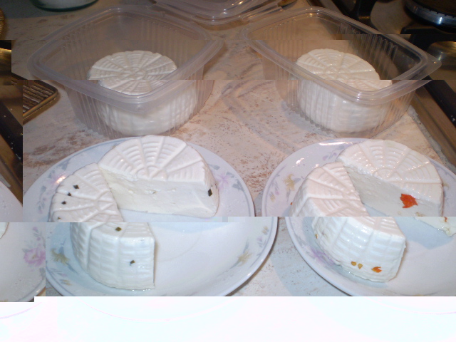 Il risultato è questo.... la consistenza è quella tipica del primosale, il sapore c'è, la sapidità pure (ho salato il latte direttamente)... :? l'unica cosa che forse noterete sono delle leggere occhiature in quelle aromatizzate (non so se dovute agli aromi).