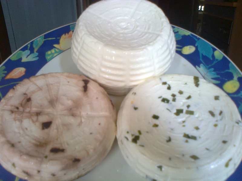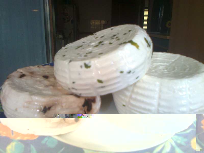 Una la faccio al peperoncio (coltivato da mia mamma nel giardino:D), una con la menta (presa dal vicino che dietro casa si diletta tra giardinaggio e orticoltura (si dice così?!?) e la terza di sola cagliata.