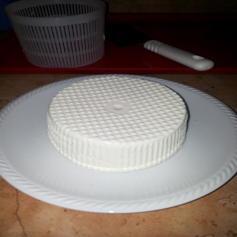 Stasera mi sono procurato un tagliere in legno, ci ho appoggiato sopra le forme e l'ho coperto con il coperchio del contenitore per formaggi ( previo lavaggio), lasciando degli spazi di mezzo cm circa alle estremità per il circolo dell'aria.